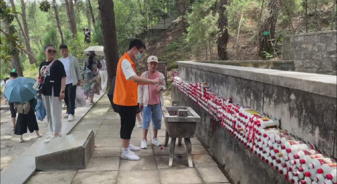 团队首先前往鄂豫皖苏区首府烈士陵园,跟随讲解员学习关于鄂豫皖苏区的革命故事,从中了解到许世友、李德生、郑维山等将军的英雄故事。之后,团队前往松柏叠翠,环境幽静的烈士墓地。这里安葬着近百位烈士和红军将领的骨灰,他们为中国的独立,解放做出了重要的贡献。为了表示对英雄们的敬重与怀念,实践团队全体成员对烈士哀悼三分钟,向英雄们表达了敬重与怀念。