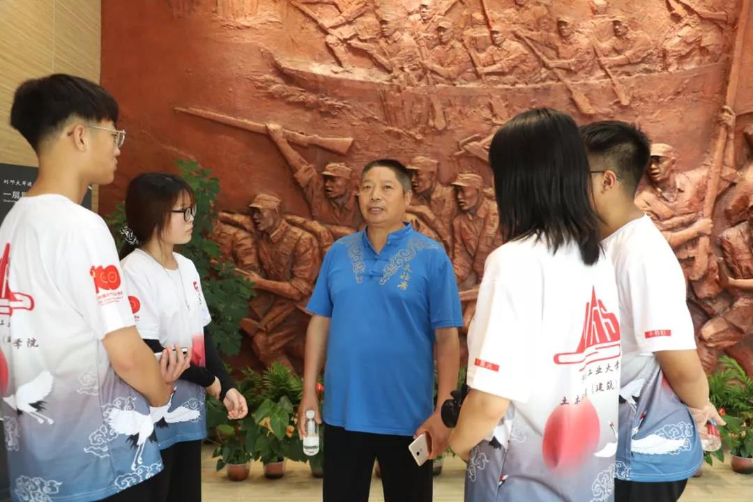 在纪念馆调研学习的过程中,队员们采访到了一位为纪念馆建设做出巨大贡献的长者。在交流中,队员了解到老人把渡淮战役的珍贵历史文物无偿捐献给国家。老人这样说道:“这是我们普通群众传承红色文化力所能及的一件事情,希望以此可以让一代又一代的孩子了解更多革命精神。”