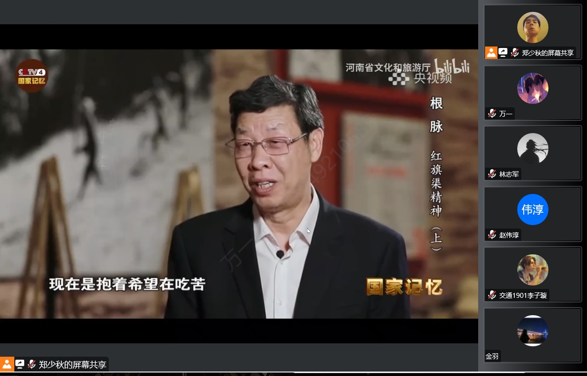 交通党支部副书记郑少秋解读道:“自力更生、艰苦创业、团结协作、无私奉献”的红旗渠精神同延安精神是一脉相承的,是中华民族不可磨灭的历史记忆,永远震撼人心。年轻一代要继承和发扬老一辈革命家吃苦耐劳,艰苦朴素的优良传统,赓续红色血脉,不断增强基层党组织的组织力、凝聚力、战斗力,更好地发挥共产党员的先锋模范作用,努力推动当前各项工作再上新台阶。