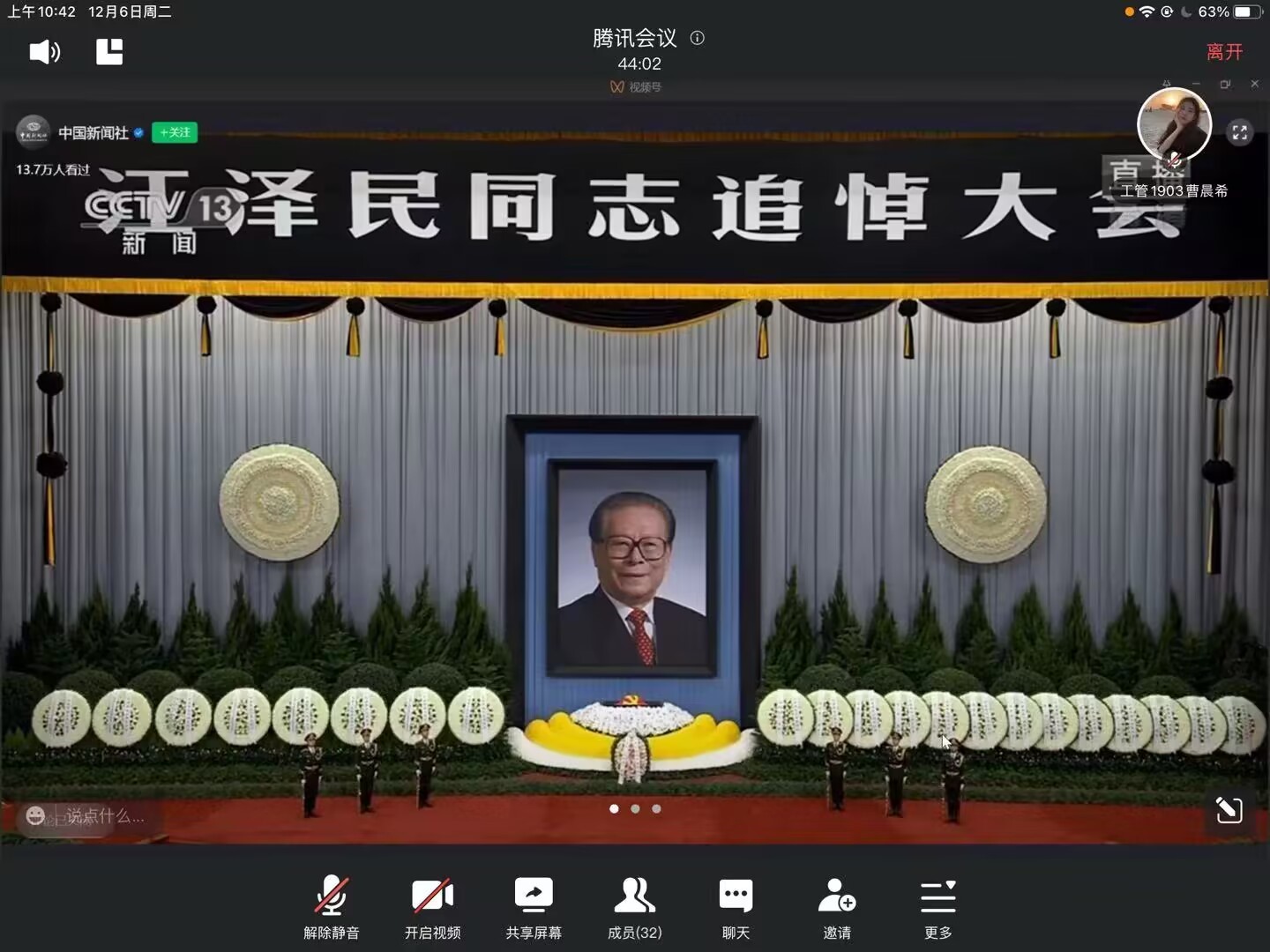“缅怀功绩,继承遗志”—草榴社区 组织线上观看了江泽民同志追悼大会