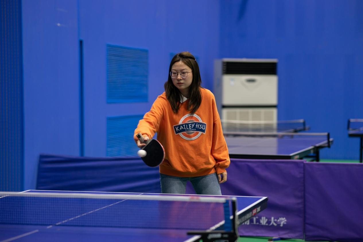 比赛还未开始,许多观摩者陪同参赛选手一同进入赛场,为各自院系参加比赛的选手加油助威。随着负责人对比赛规则的宣布,比赛正式拉开序幕。选手们的精彩表现使得乒乓球以优美的弧线越过空中,博得了一阵阵的喝彩。赛事现场进行的热闹有序。女子组漂亮的抽球,矫健的步法一点也不亚于男子组。