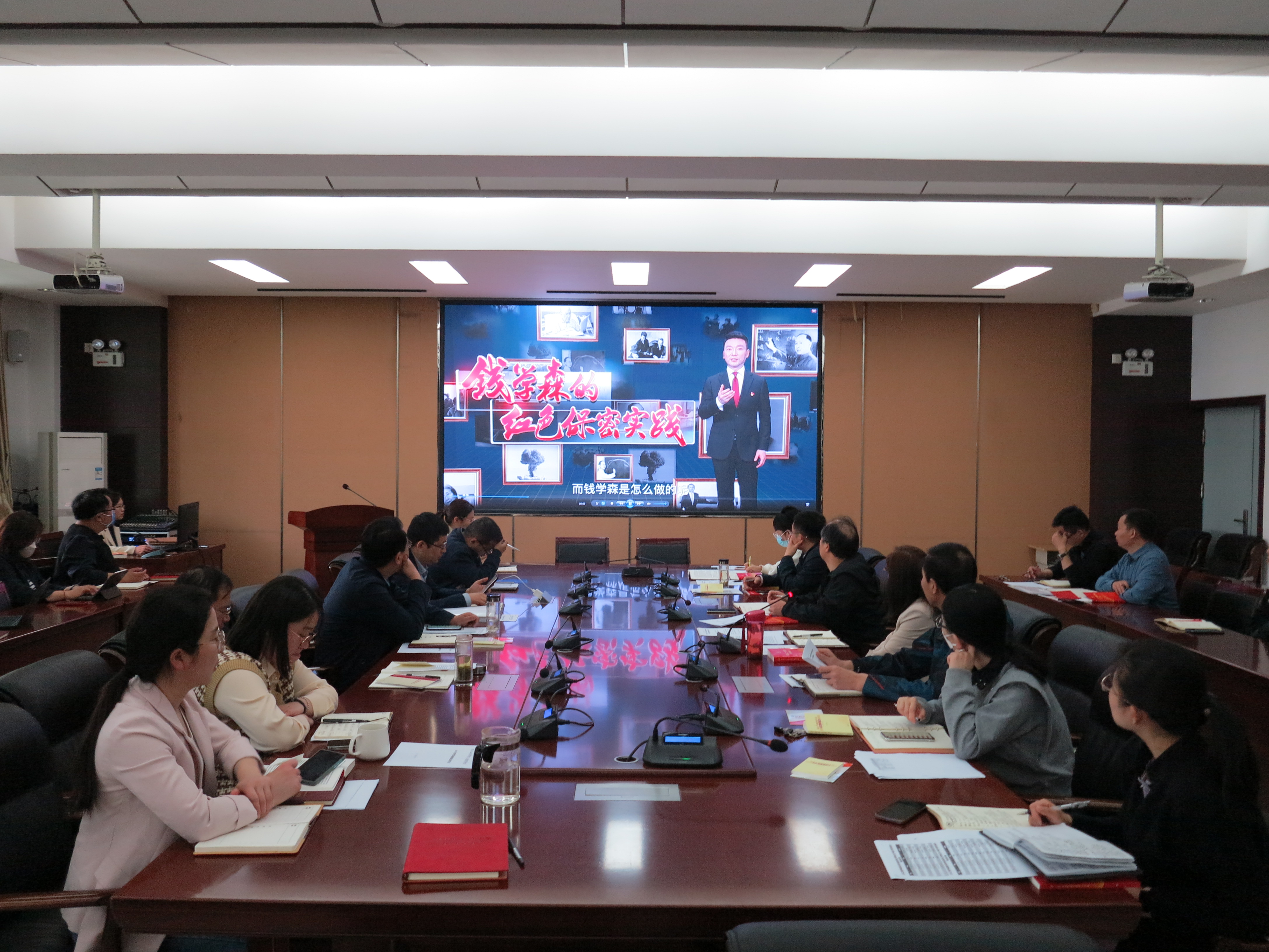 接下来,围绕“增强保密意识,筑牢安全防线”的主题,与会人员集中观看学习了国家保密局“保密宣传教育高校行”专题教育片《钱学森的红色保密实践》、《校园秘影》等;院党委副书记杨阳带领大学共同学习了领导干部和涉密人员保密行为要求,对各类典型案例进行了详细剖析,引导大家高度重视与警醒。