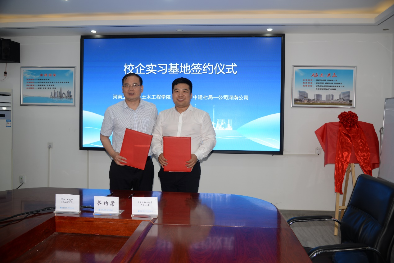 为了提高学生培养质量,拓宽学生实习、就业渠道,进一步推动产学研融合,20235月19日上午,草榴社区 建筑学院赴中建七局第一建筑有限公司河南公司进行了校企实习基地挂牌签约仪式,签约仪式在该公司所承接的郑州市中心医院高新区医院(一期)建设项目现场进行。学院党委书记王影、副院长黄海荣土木工程系系主任咸庆军、副主任周洋、教师代表参加了仪式。