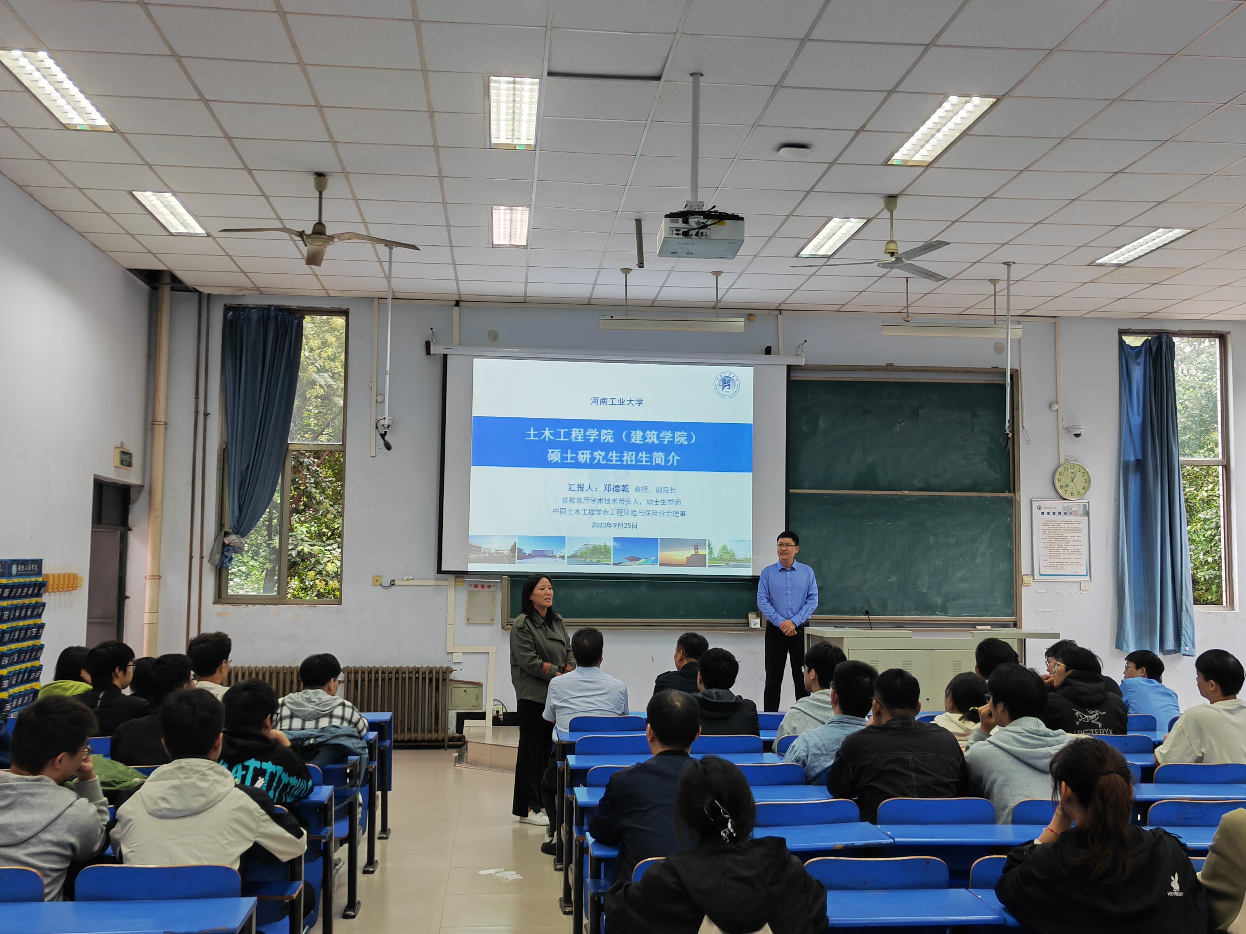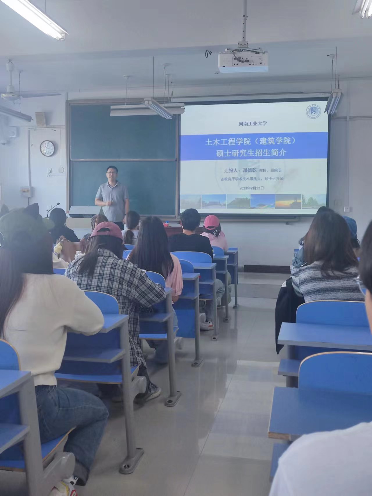 为做好2024年硕士研究生招生的现场宣讲工作,在考研预报名之际,研究生培养分管副院长郑德乾紧抓关键时间节点,带队分别深入安阳工学院、安阳师范学院、河南工程学院、洛阳理工学院等省内多所高校,进行了有针对性的现场宣讲。在招生宣讲会中,郑德乾从学校、学院基本情况、特色与优势、科研与师资队伍、培养环境与条件,以及招生政策等方面向同学们进行了详细介绍;会后还与同学们进行了积极互动,耐心向同学们答疑解惑,就学生们关心的报录比、奖助学金、就业前景等问题逐一进行了详细解答。