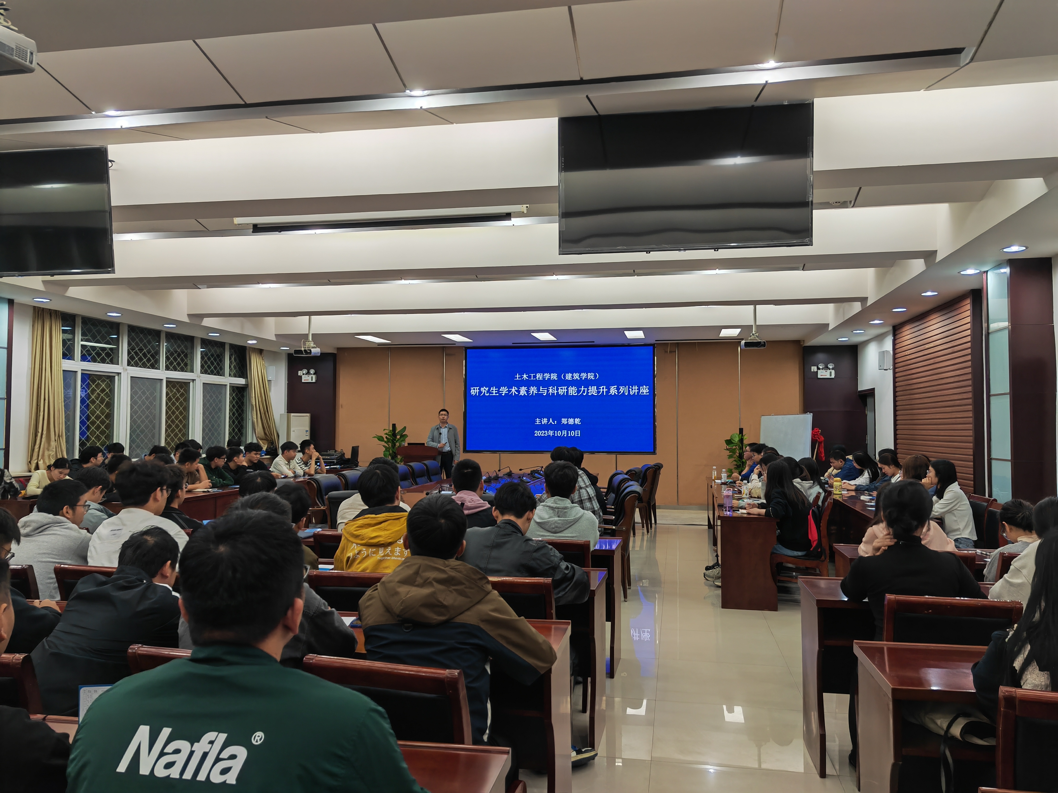 为了进一步提高研究生的学术素养和科研能力,积极培养创新思维和科研精神,草榴社区 于10月10日晚7:00在32208学术报告厅举办研究生学术素养与科研能力提升系列讲座。第一讲题目为《基于CFD数值风洞的结构风工程应用》,由副院长郑德乾讲授。全体2023级硕士研究生聆听讲座。