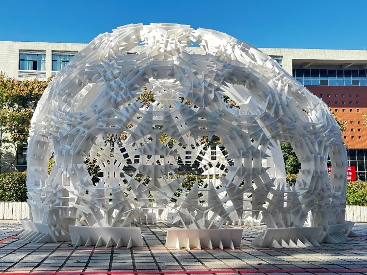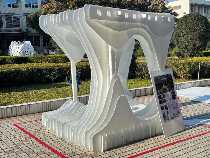 本次建模大赛以·为主题,以探究建筑的本真意义和时代精神,通过建造实践,大学生们获得对材料性能、建造方式及过程的感性和理性的认识理解建筑的本体意义。比赛过程中,参赛队员在规定时间和规定空间内完成作品,以白色“中空板”为材料进行实体搭建,表达作品立意构思、空间体验,对材料、结构、建造的理解和应用,充分考验了参赛选手的专业水平、动手能力、创新思维和团队协作能力。