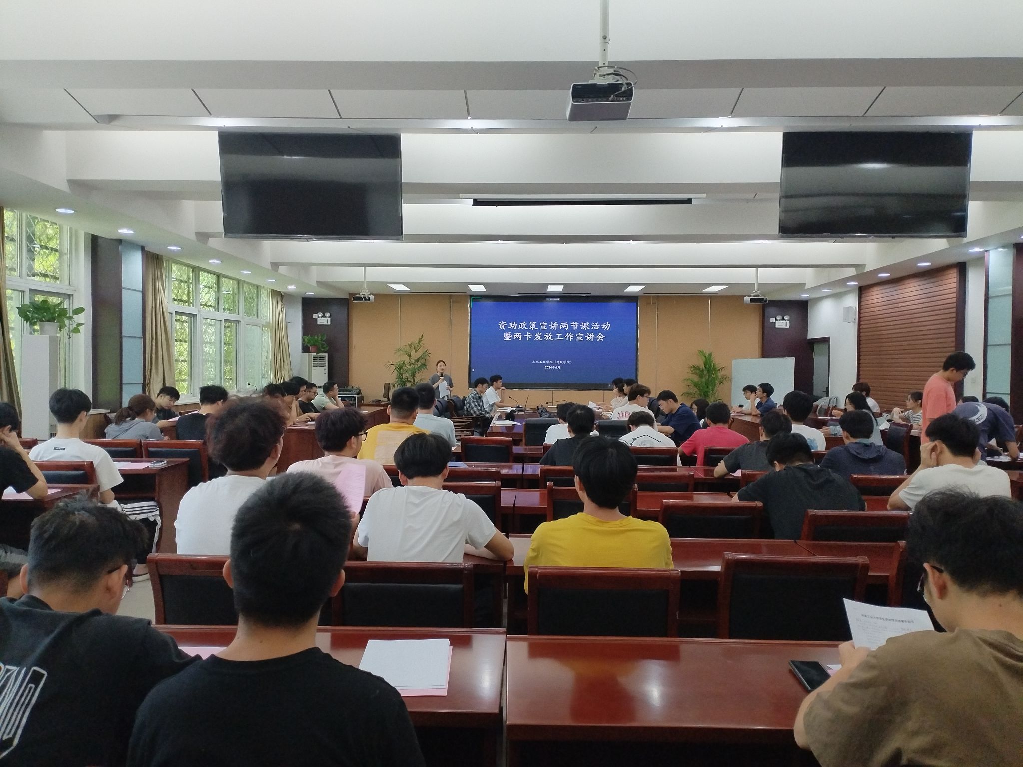 为进一步宣传落实好国家资助政策,做好“两卡发放”和高校国家贷款政策宣传工作,6月27日,草榴社区 (建筑学院)在32208会议室分别召开了资助政策宣讲“两节课”活动暨2024年“两卡发放”和高校国家贷款政策宣讲会。学院资助工作负责人郭珊珊、资助助理、有意申请2024年高校国家贷款及脱贫享受政策户和风险未消除等重点群体学生参加了会议,会议由郭珊珊主持。