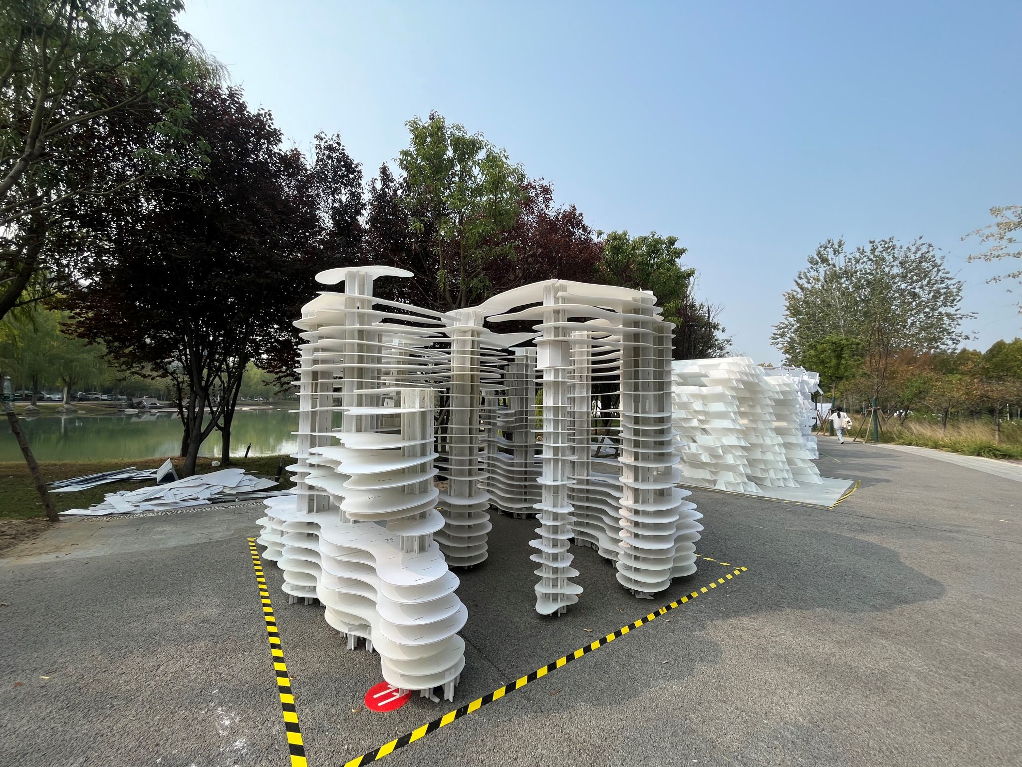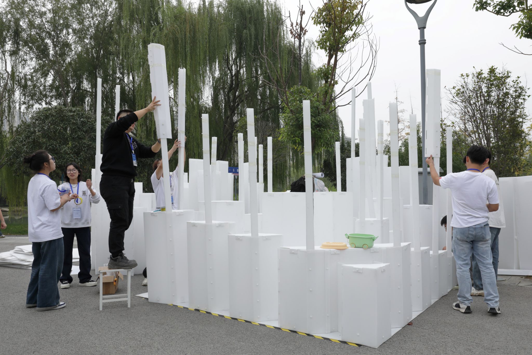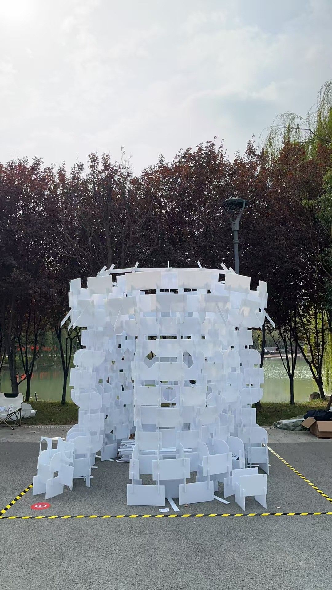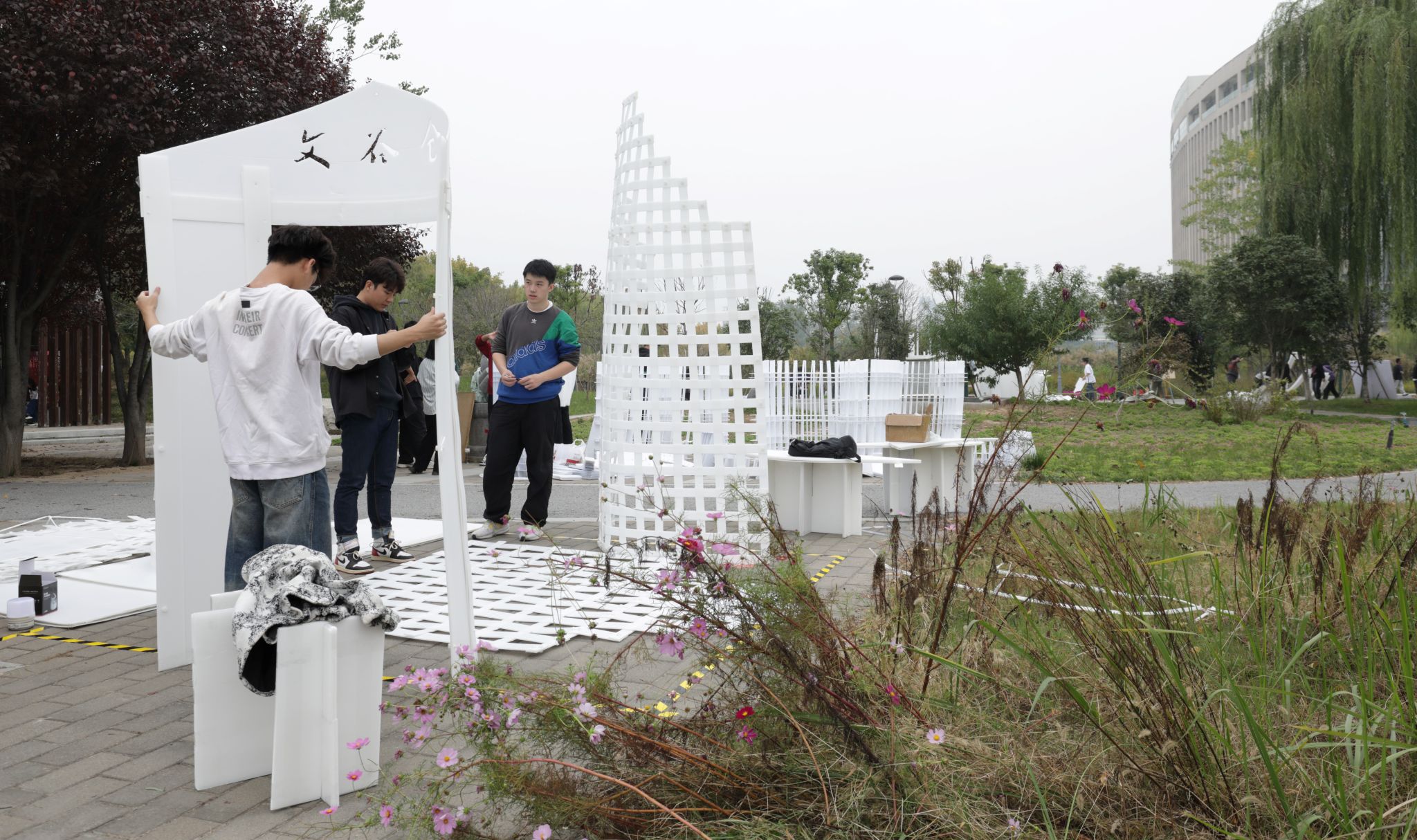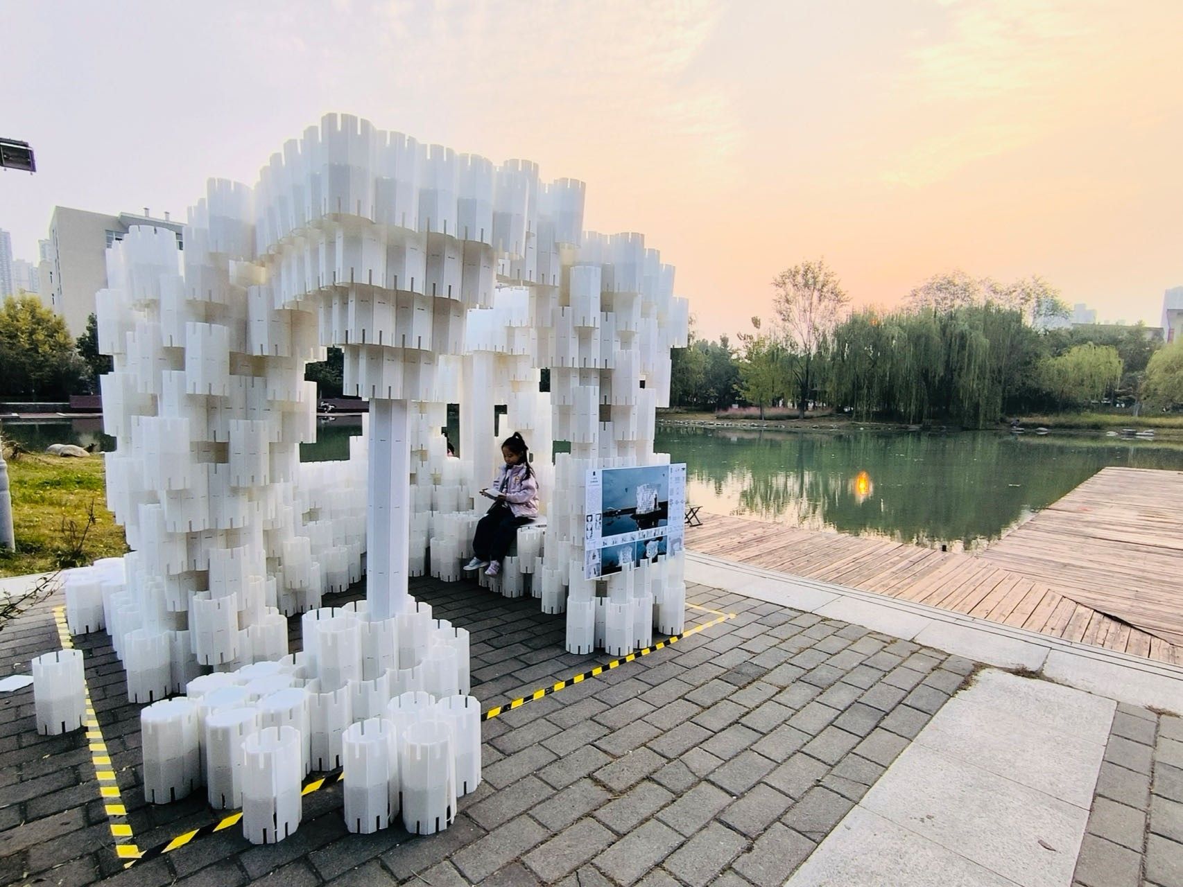 本次比赛以粮食仓储建筑“筒·藏”为设计主题,以白色中空塑料板为材料,进行形式构思及空间搭建,为草榴社区 中心景观湖畔沿岸设计并搭建一组师生休息场所。希望通过比赛激发同学们对中国粮食文化的兴趣和热爱,从而保护好、传承好、弘扬好博大精深的中国粮食文化。