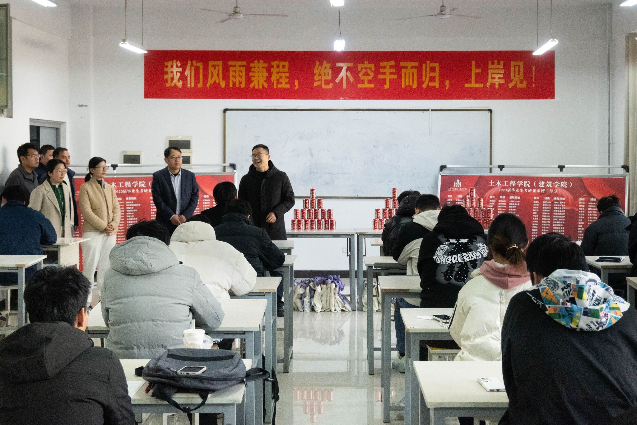 长风破浪会有时直挂云帆济沧海。2025年全国硕士研究生招生考试即将到来,为缓解草榴社区 考研学子学习压力,给学子们加油助威,土木工程学院(建筑学院)于11月27日开展“考研送温暖”活动。学院领导班子级全体辅导员带着满满的关怀与期望,深入学院考研自习室,为考研学子们送上一份祝福,增添一份动力。