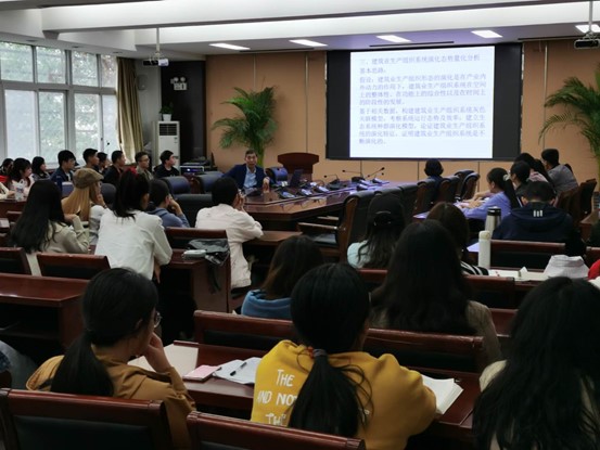 师生做题为《建筑业生产组织形态演化机理研究》的精彩报告。学院工程管理系老师及各年级工程管理专业学生代表和研究生代表聆听了本次报告。报告会由土木工程(建筑)学院副院长黄海荣主持。